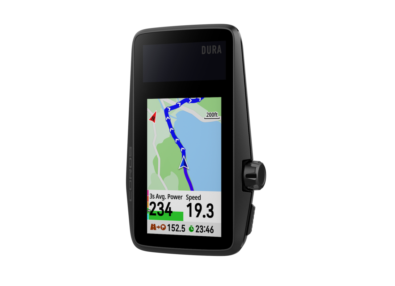 Wahoo Elemnt Bolt 3 – A Wahoo kompakt, versenyorientált komputere szintén kétfrekvenciás GPS-sel érkezik, tehát a pontosság terén egyenrangú versenytárs. A 2,3"-os, 16 millió színt megjelenítő TFT kijelzője éles és kontrasztos – de a mérete kisebb a DURA-énál, és érintőkijelzőt sem kap, csak fizikai gombokat. Az üzemideje 20–26 óra, ami töredéke a DURA-énak. A Wahoo ökoszisztéma és a Wahoo app letisztult, könnyen kezelhető, és Strava, TrainingPeaks, Google/Apple Maps integráció is szerepel benne. Napelemes töltés nincs, offline újratervezés nincs. A Bolt 3 ára a DURA-éhoz hasonló sávban mozog, de sokkal rövidebb üzemidőért cserébe kiváló kezelhetőséget és Wahoo-minőségű ökoszisztémát kapsz. Országutisoknak erős alternatíva.