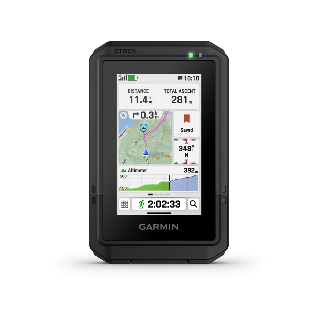 The eTrex Touch handheld is purpose-built with an IP67 water rating and impact-resistant (MIL-STD-810) design to withstand weather and rugged conditions.