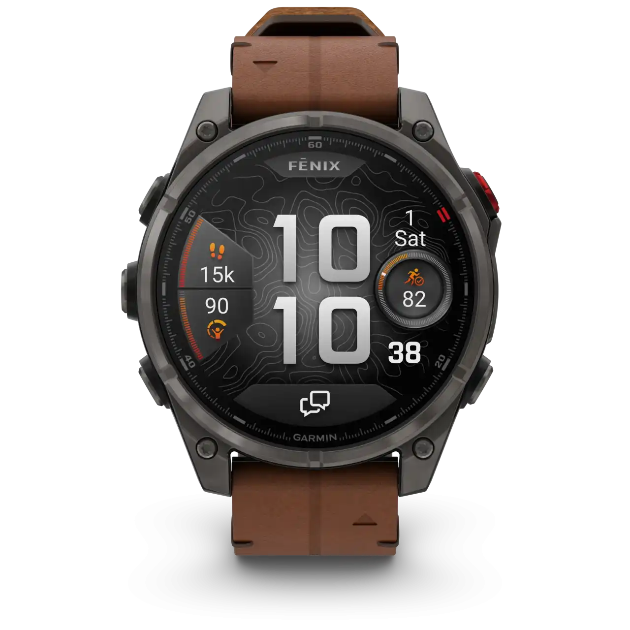 Garmin fēnix® 8 Pro – 47 mm, AMOLED Sapphire, Carbon Gray DLC with Chestnut leather band