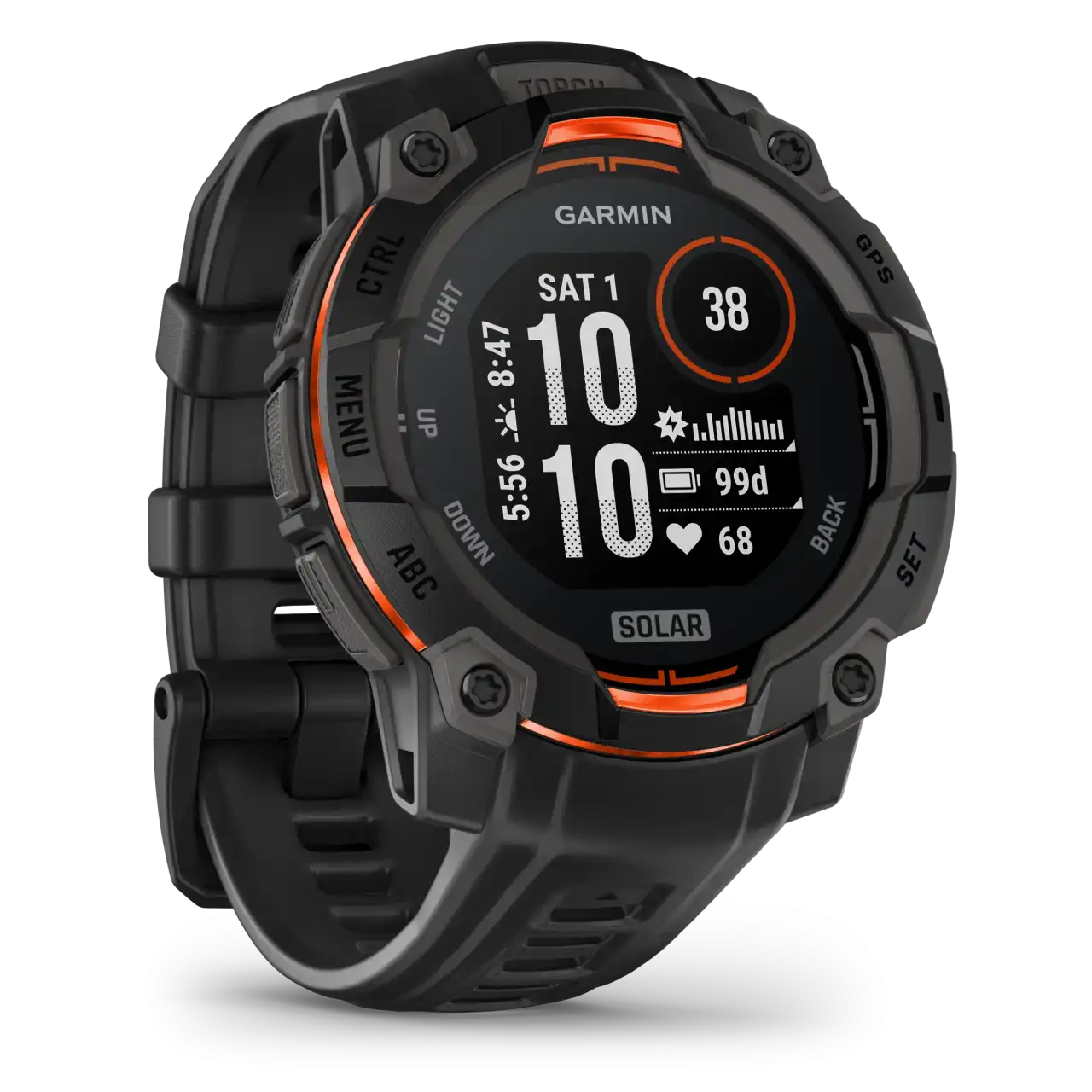 Navigate your next trail with an altimeter, barometer and 3-axis electronic compass.