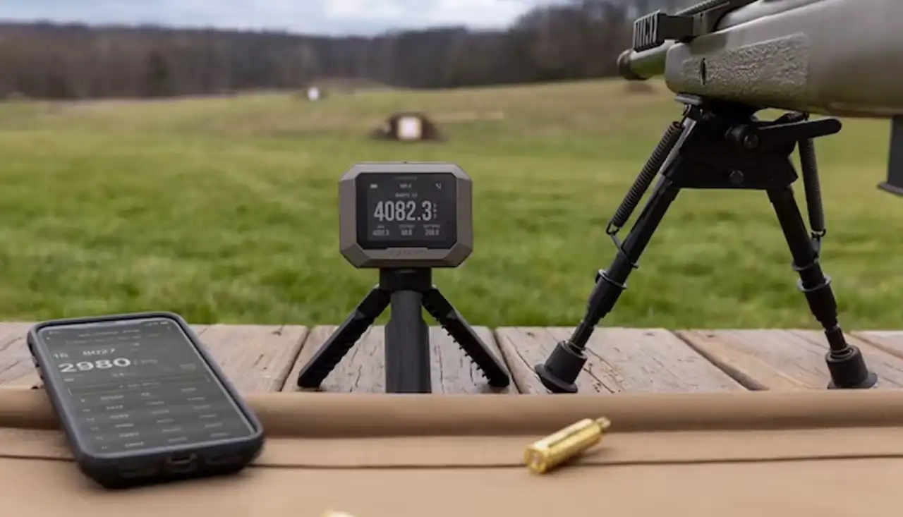 Stabil tripod rögzítés kronográfhoz, amely padon vagy fekvő lövészetnél pontos és ismételhető mérést biztosít.